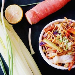 面煮好(8成熟偏生,等会还要炒)过凉水滴几滴油拌开备用