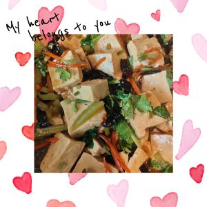 锅中烧水,放入少许盐,再放入豆腐,焯水2分钟,盛出备用