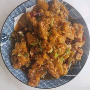 起锅烧油放入葱姜蒜沫,辣椒煸炒出香味后放入炸好的茄子,翻炒20秒加入醋,盐,老抽,白糖和少量清水炖煮收汤即可