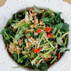 加上之前的鸡汁,料汁搅拌均匀后淋在鸡肉上