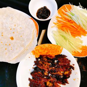 叉烧肉包三丝裹甜酱,吃的饱饱的