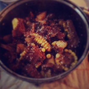 焖个五六分钟左右 揭开锅盖 |不要被香晕倒了(^O^) | 大火收汁 起锅撒上小小炒过的白芝麻 over (表示家里没有那么大的碗 就用煮汤的锅了 请忽略如此粗糙 因为就是这么屌 (-_^)
