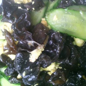 黄瓜快速翻炒稍微出黄瓜味的时候放入木耳