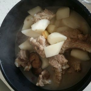 把排骨洗净,凉水下锅,水多加一些,不要盖盖子,大火烧开,撇去浮沫