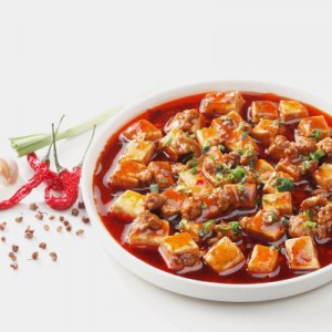 将豆腐切成1cm左右的方块,再将味好美麻婆豆腐调料35g加入100g清水,混合均匀,调成调味汁