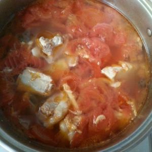 切好姜片,加入水,大火烧开,加入排骨,撇去油末。