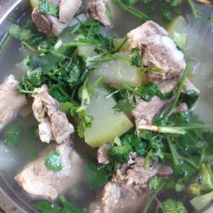 下入冬瓜后煮10分钟,放盐,撒香菜。出锅!