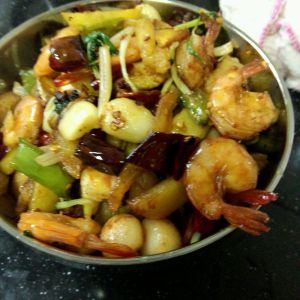 将蒜,干辣椒,花椒,姜下锅翻炒