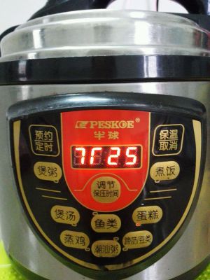 盖好!开始咯!因为我是第一次用这锅,所以时间没有掌握好,粘锅了!