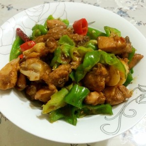 最后加入绿辣椒、红辣椒,翻炒!加少许生抽、胡椒粉、调味!尝尝味道是否够,不够加盐!