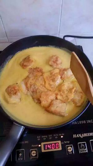 倒入锅中煮到冒泡,试味,因为加了南瓜和水,把咸蛋的味道拉淡了,不够味的在这时候就要加适量盐调味。
