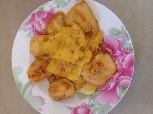 最后我的豆腐碎的太厉害了,索性就把剩在盘里的淀粉和蛋液加上碎豆腐一起拌在一起,做成一个个的豆腐蛋饼了,这样一来全部材料用完,嘿嘿,还不浪费!
