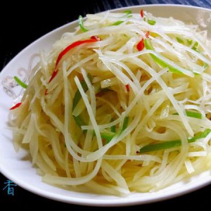 土豆去皮洗净切丝(对自己刀工没信心的可以用刨丝刀,个人建议刀工不错的人手工切丝,因为手工切丝炒出的口感比刨丝刀的棒)