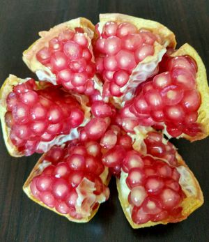 剥石榴很简单,用刀子沿顶部蒂头割一圈,取下蒂,再根据膜的生长将石榴分割成6块,掰开即可。