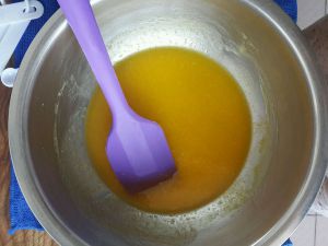 筛入65克低筋面粉,拌至无颗粒状