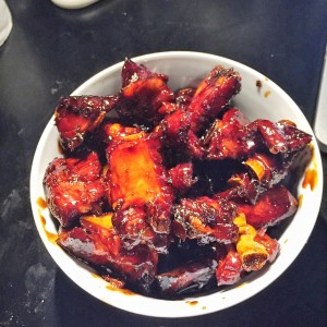 原料:排骨500g,话梅3粒,料酒2大勺,生抽1.5大勺,香醋3大勺,冰糖30g,姜片5片,葱花1小勺,熟白芝麻1小勺