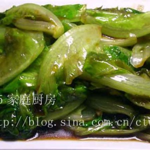 锅内入油烧热,爆香大蒜粒后,放入生菜炒,炒至生菜略变软,马上加入两勺蚝油,炒匀关火盛出,就完成了。