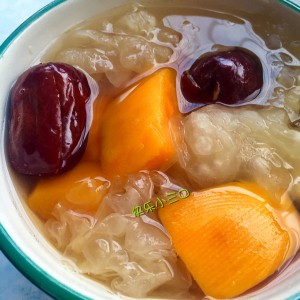 枣和银耳倒小半锅清水煮开转小火炖大约半小时,放冰糖和木瓜炖大约十分钟即可!