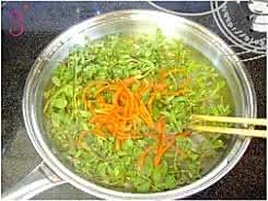锅里加入适量水烧开,加入1点盐,放入洗净的马齿菜、红甜椒丝汆烫1-2分钟;