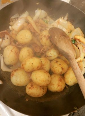 然后把土豆倒回锅里,加入生抽和一点点白开水煮一下