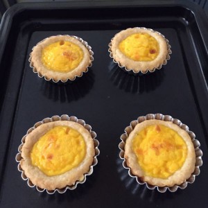 蛋挞液的制作方法:奶油,蛋黄,牛奶,糖混在一起
