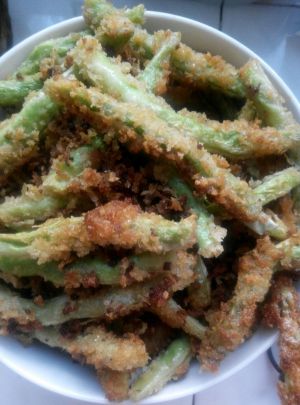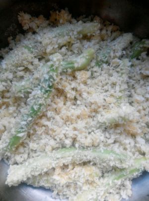 把裹好蛋液的芸豆放入面包糖里滚均匀