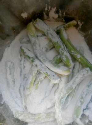 把芸豆择净洗后控干放入干面粉里滚均匀