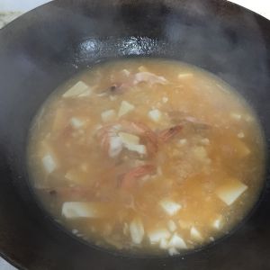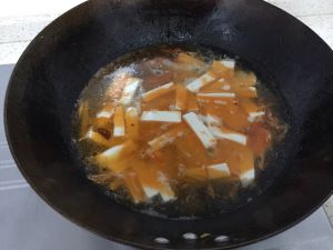 加水加豆腐块,小炖一会,嫩豆腐不需要炖的时间太久