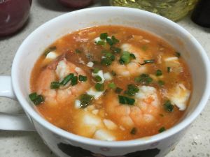 放入虾肉,虾肉熟后加盐,黑胡椒粉
