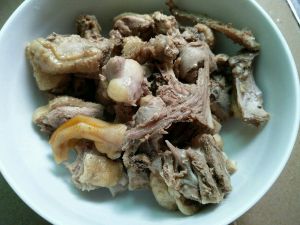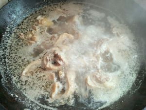 鸭肉斩成块稍大一点,入锅焯水,去掉浮沫。。
