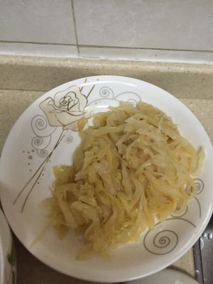 泡菜清洗干净切丝待用,也可浸泡几分钟。