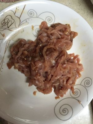 肉丝淋少许老抽、撒上盐,生粉拌匀。