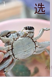 选湖蟹:选母蟹(圆脐)、重量在一两半到二两的、背厚、用手捏蟹脚比较硬的,蟹看上去比较干净,肚子这里比较白的。