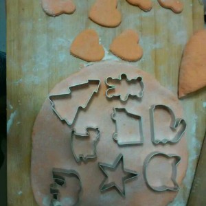 然后用原汁发面,等到面发好,切成小块擀成适当厚度用小模型压出喜欢的形状
