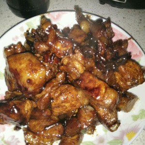 放入料酒,盐,酱油(味精几粒更出味),水半碗,待收汁即可。