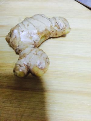老姜拍烂后放入猪蹄汤一起熬煮。
