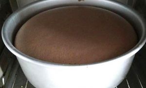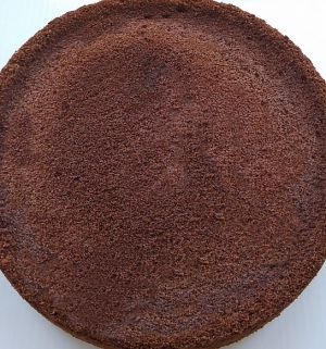 晾凉后的蛋糕脱模,切片。同样的做法再做一个八寸可可戚风