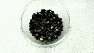 放入炒锅干炒,开中小火不断翻炒,大约炒10分钟,至黑豆爆皮,豆脆,闻到豆香。