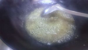 国内热少量的油,放入蒜姜末和五香粉炒香,倒入少量的水,水开后加入化好的淀粉勾芡。再依次放入一丁点的胡椒粉,花椒粉,生抽。一丁点喔~有点底味就可以。