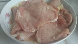 腌制猪排,猪排洗干净,用刀背把肉质敲松,倒入料酒,丢丢盐,蒜泥,胡椒粉,辣椒,生姜腌制一个小时