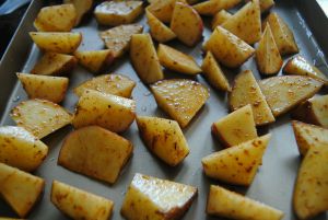 土豆洗净,我是带皮烤的,所以要洗很干净哦