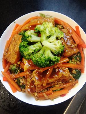 将炒好的汤汁浇在摆盘好的西兰花豆腐上就完成。