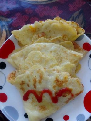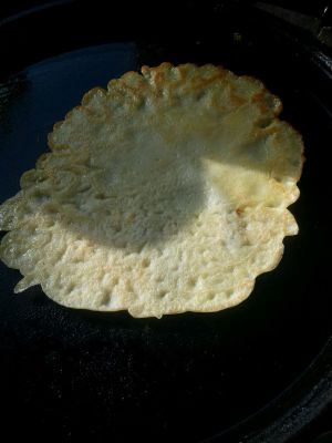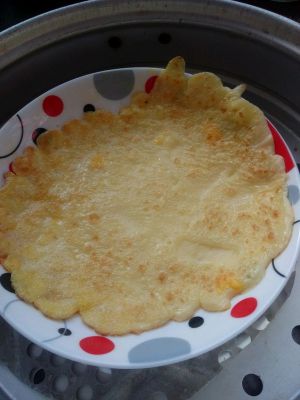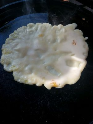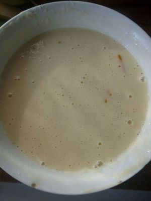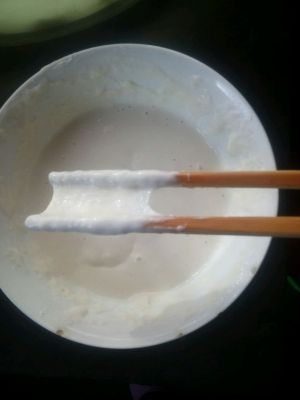 稀的话在放点面,拿筷子可以拉开成这样就差不多了。其实这个随意,别太稀就行,因为要放蛋液,太稀了就不行了