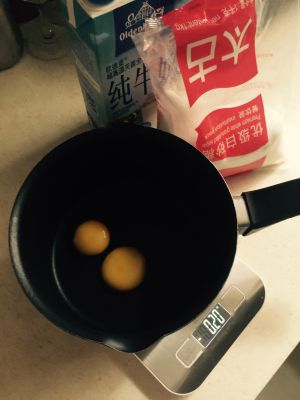 蛋黄+糖+牛奶混合搅拌均匀