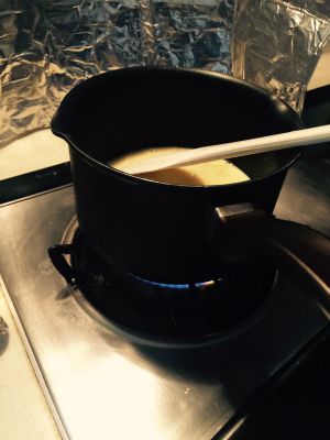 小火加热浓缩成糊和蛋奶糊混合