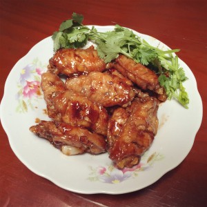 锅中倒入油(四至五成热),将撒好粉的鸡翅一个一个鸡翅放入