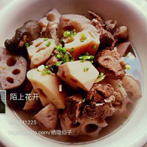 排骨焯水、莲藕切滚刀块、香菇清洗干净、姜切片、葱白切段。
