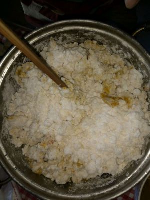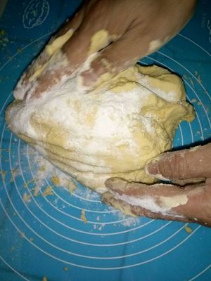 搅拌均匀,揉面。揉到不沾手,中途适当撒些糯米粉