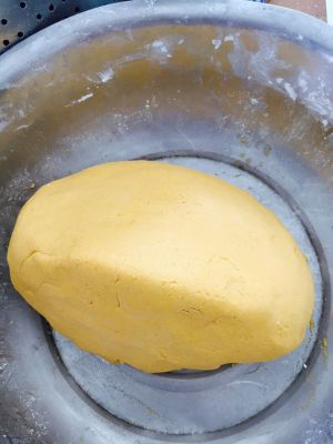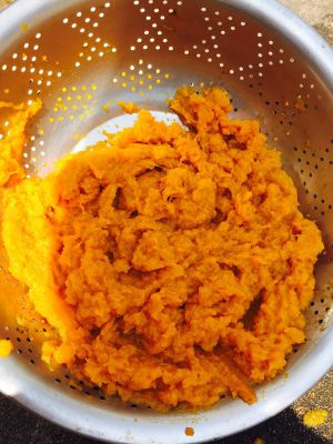 把水沥干后加入糯米粉混入南瓜泥中搅拌均匀