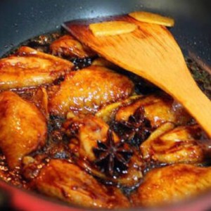 大火收汁,收汁时要不停的用铲子翻动,自制鸡翅表面裹上焦黄色,锅中有明油渗出即可